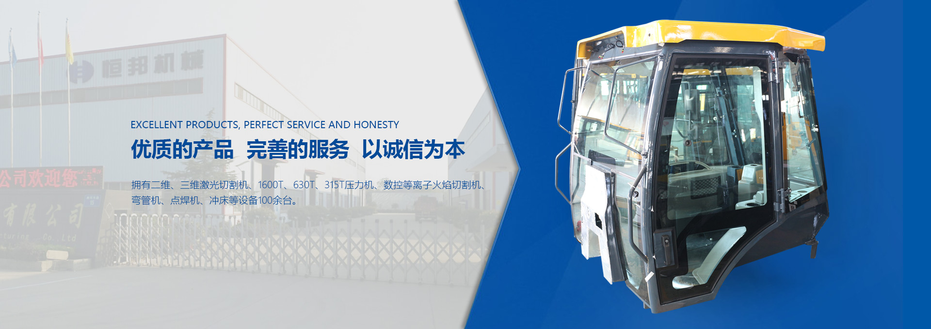 揚州市恒邦機械制造有限公司位于風(fēng)景秀麗的揚州市江都區(qū)丁伙工業(yè)園區(qū)。瀕臨長江,緊靠京滬高速、啟揚高速,地理條件優(yōu)越,交通營運便利。我公司集多年模具開發(fā)和鈑金制造經(jīng)驗,自2009年起,專注生產(chǎn)工程機械駕駛室、配重塊、覆蓋件和特種駕駛室。研發(fā)設(shè)計技術(shù)人員30名,員工300名。現(xiàn)代化生產(chǎn)車間20000平米。...